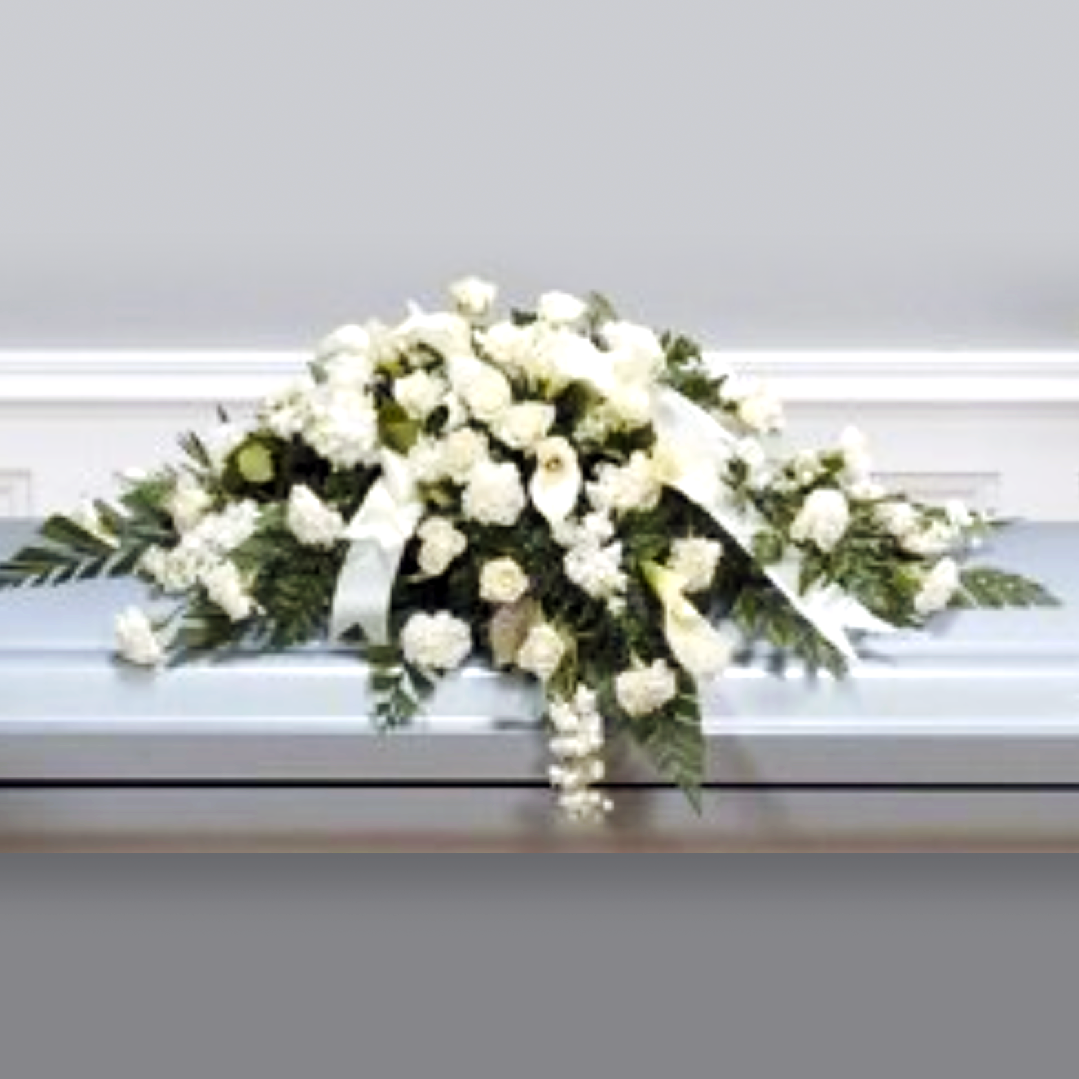 Much love for your dearly Beloved is expressed in this ornate combination of Roses, Calla Lilies, Carnations and stock.