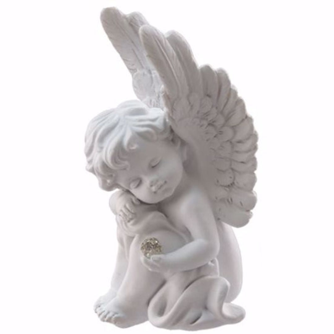 Baby cherub polyresin angels holding a sparkly crystal.