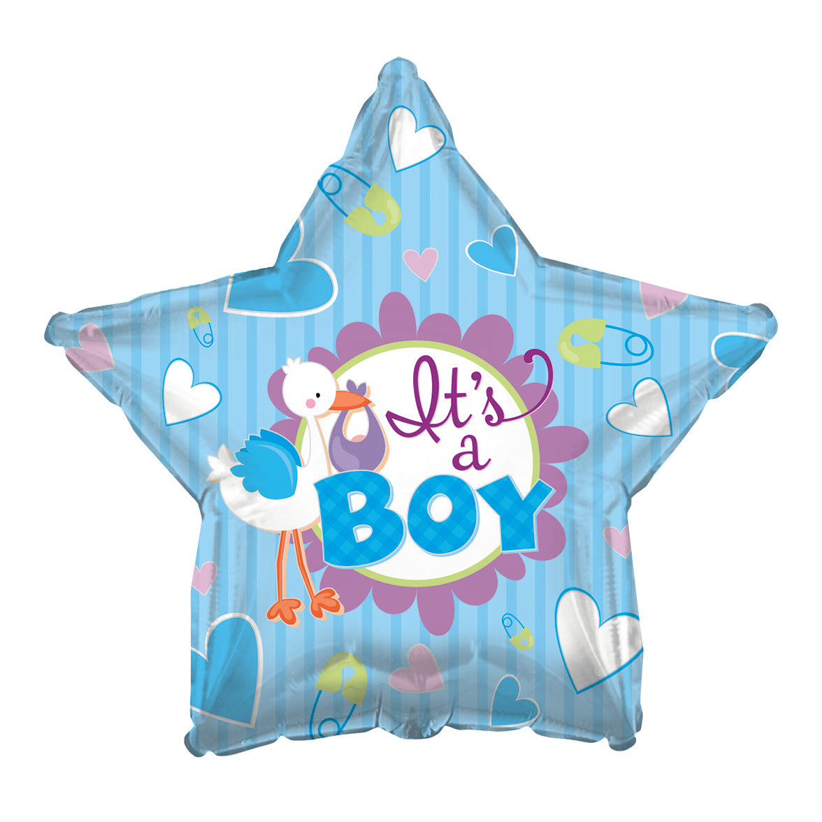 18" Blue It's A Boy Mylar Helium balloon with stork print.